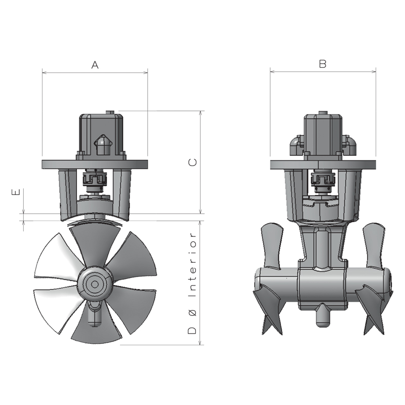 diameter tunnel, a thrust rating up to 125/275 (kg/lbs) and integrates all the