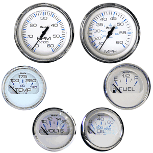 Faria Chesapeake White Stainless Steel Boxed Set, Inboard Motors (Speed, Tach, Fuel, V, Oil pressure) KTF001