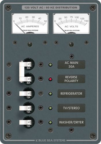 Blue Sea Panel AC 3 Pos120V Main & Voltmeter & Ammeter 8409