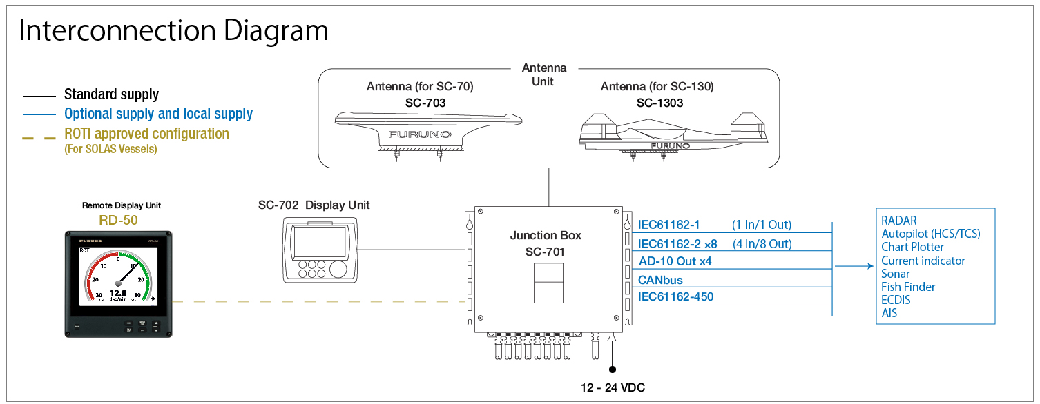 - Display the heading (HDG) of the ship